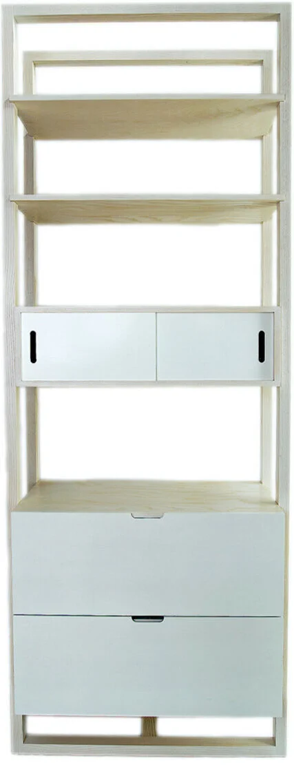 design brief: a client that works 8-10 hour days in a tiny office with high ceilings but very little floor space. She needed lots of file storage and open shelving to display her books and professional awards. location: New Orleans, LA materials: whitewashed ash and birch